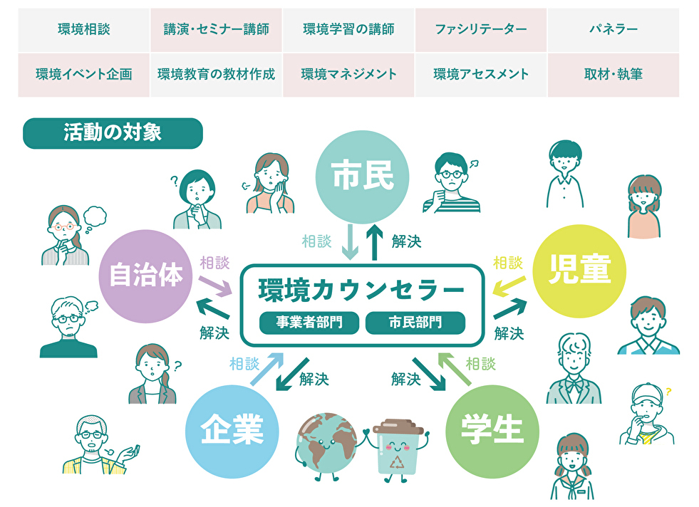 など、どんな依頼にも当会の環境カウンセラーなら満足度の高い内容で対応いたします。